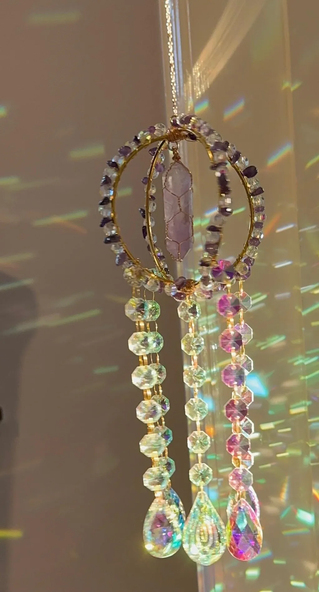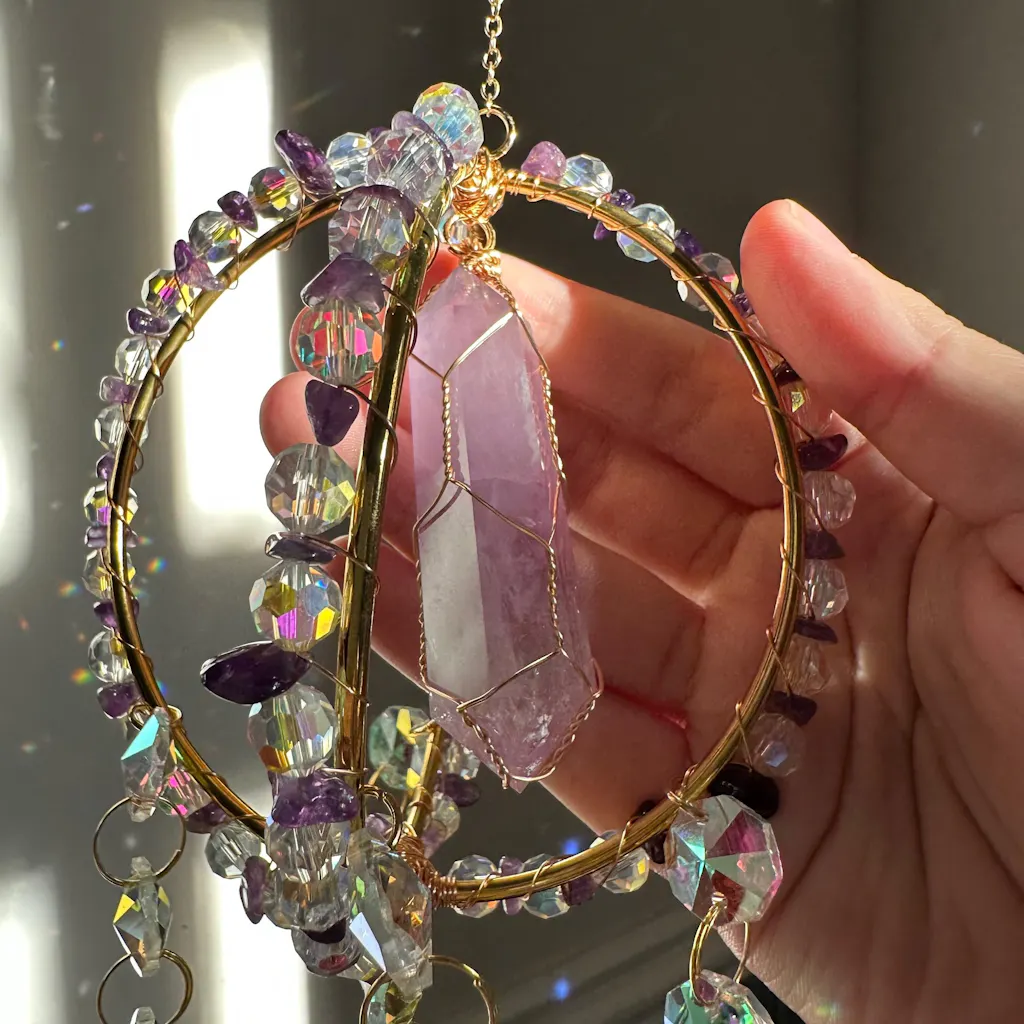 Each suncatcher is lovingly handcrafted with natural stones that carry their own unique energetic signature, creating the ultimate balance between your inner world and outer world.